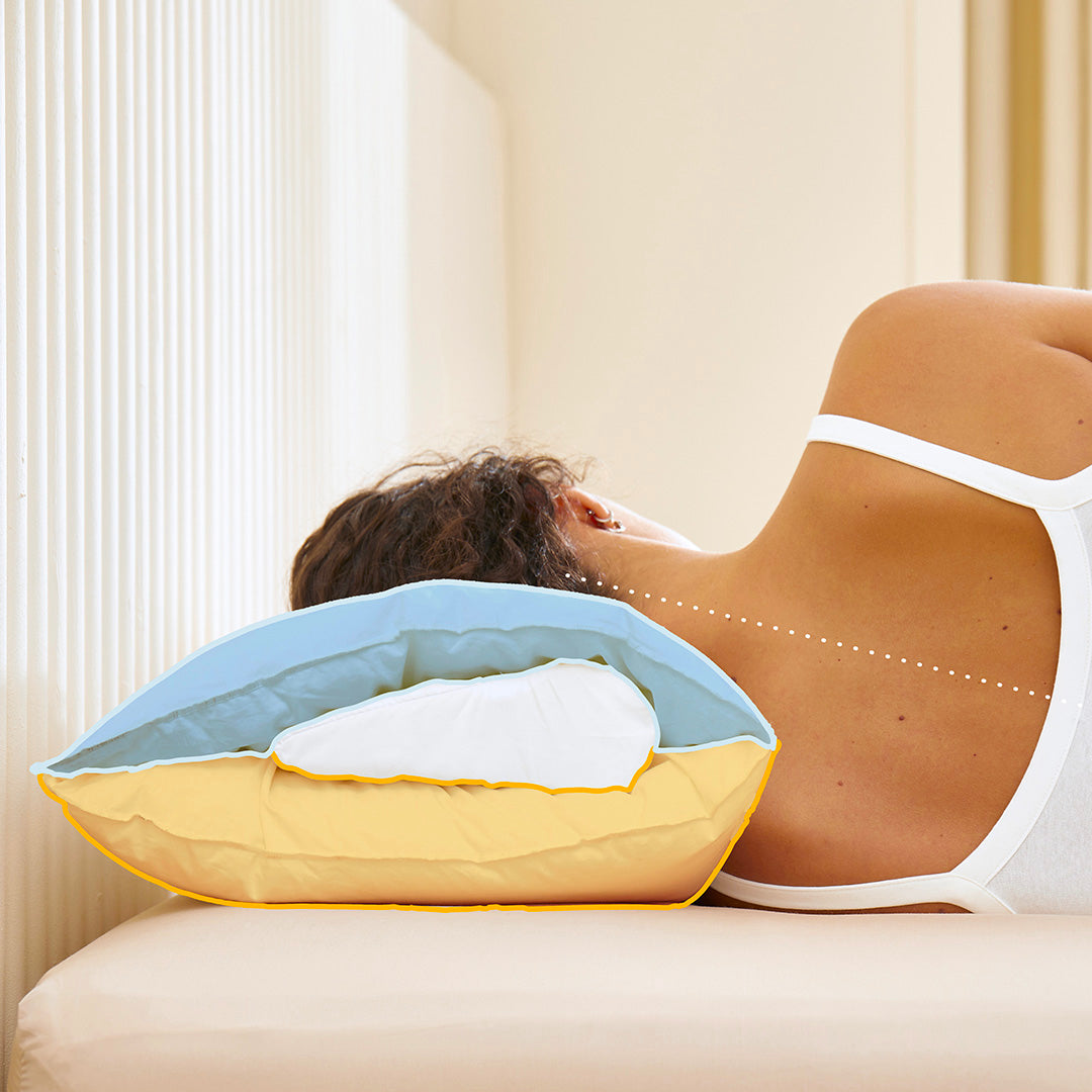 Nestled between the 2 compartments, the core offers unique neck support while providing the comfort of a traditional pillow.